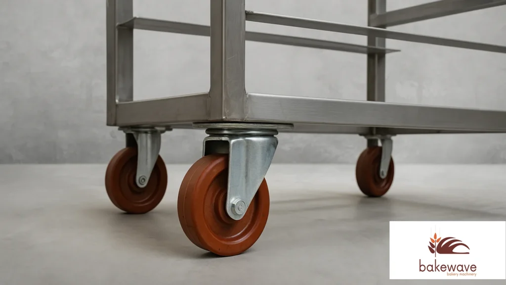 The wheel provides stable motion even under continuous use, ensuring easy trolley maneuverability in tight kitchen or industrial layouts.